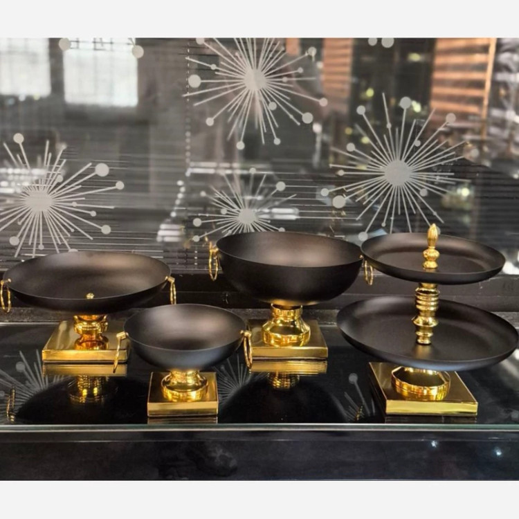 سرویس پذیرایی 4 تیکه پایه مربع مشکی طلایی
