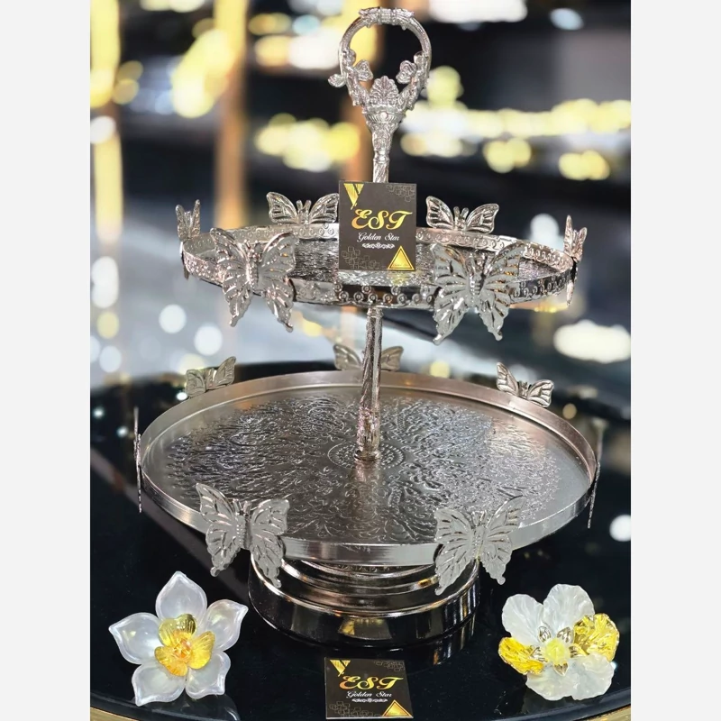 شیرینی خوری دو طبقه پروانه مدلی ساده و جذاب جهت سرو شیرینی و شکلات گزینه مناسبی هست قیمت مناسب این مدل هم جهت کادویی عالیه