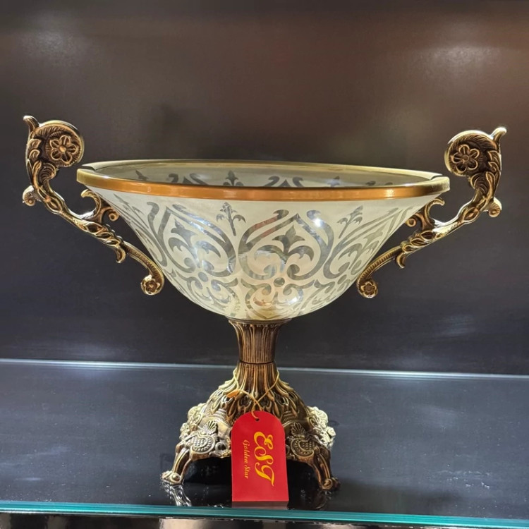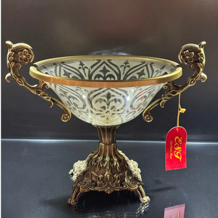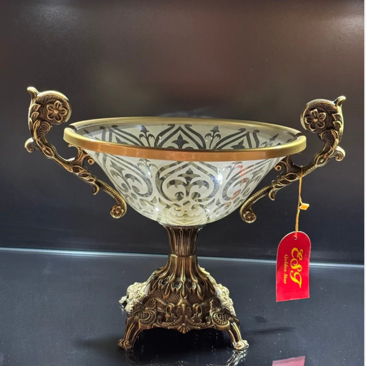 کاسه آجیل خوری پایه دار شیشه سندبلاست پایه و دستگیره رنگ آنتیک کیفیت درجه یک برای دکوری هم گزینه مناسبی هست