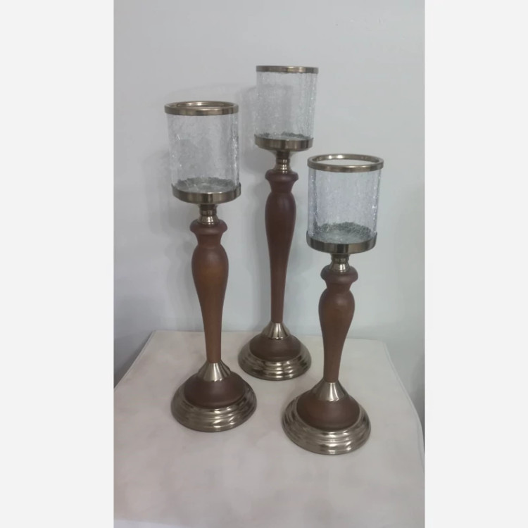 تلفیقی از چوب و فلز و شیشه که نمایی جذاب رو خاص به این مدل شمعدان داده است