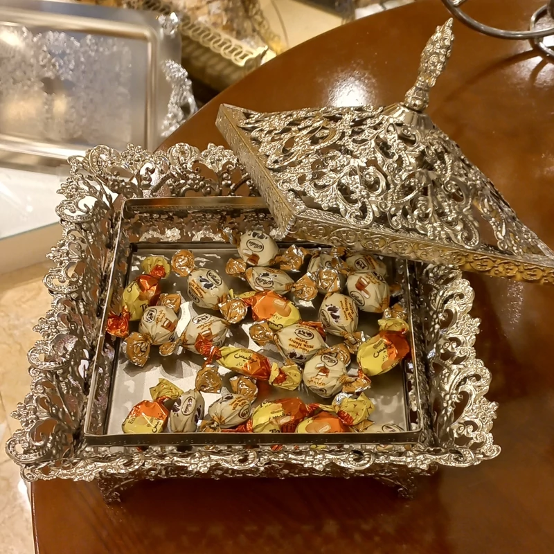 شکلات خوری مربع مدل نورا در دو رنگ طلایی و نقره ای شیک و زیبا مناسب جهت کادویی
