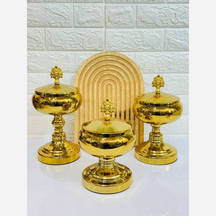 شکلات خوری 3 سایز توپی رنگ طلایی با آبکاری فورتیک کیفیت عالی و خوش قیمت مناسب دکوری و کادویی