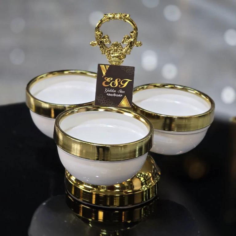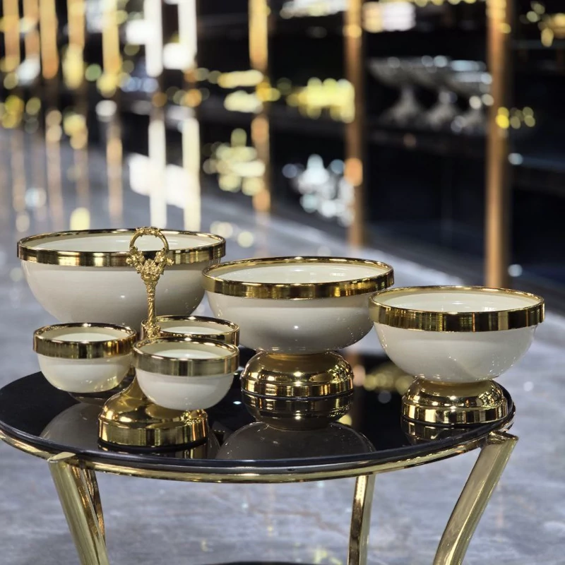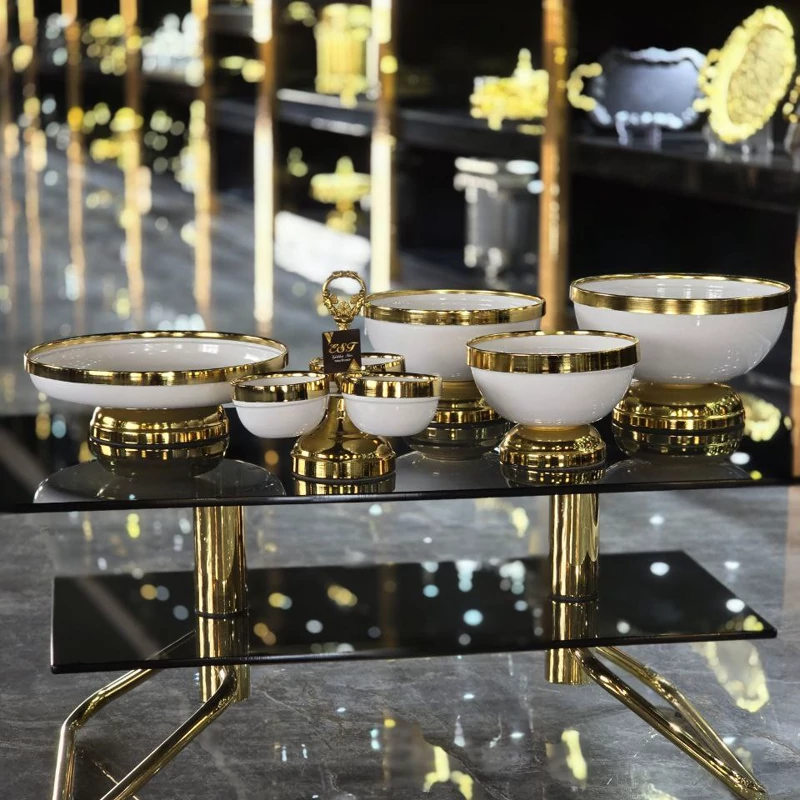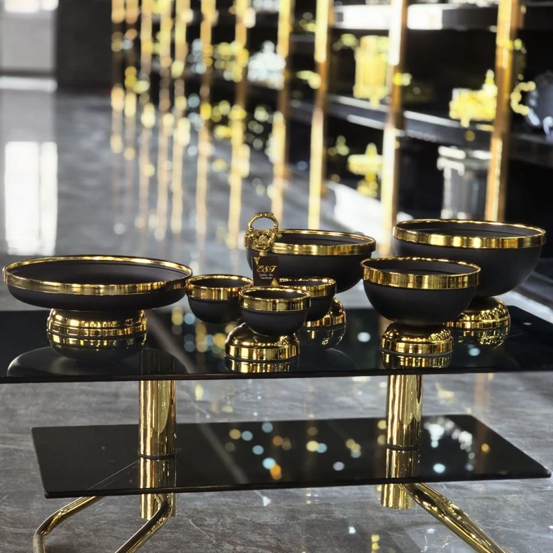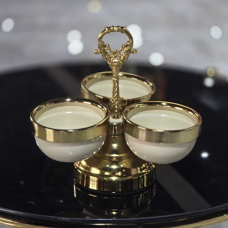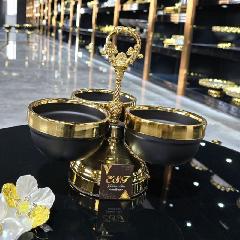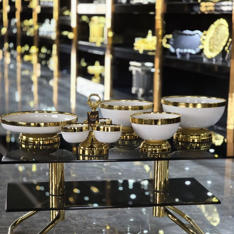 ست پذیرایی 5 تیکه شامل شیرینی خوری میوه خوری آجیل خوری شکلات خوری اردو خوری ست پذیرایی شیک وساده و قیمت مناسب از مزایای این مدل هست