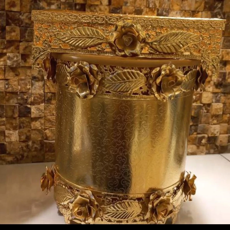 سطل و جادستمال کاغذی گلبرگ طلایی با کیفیت عالی مناسب جهیزیه عروس شیک و زیبا