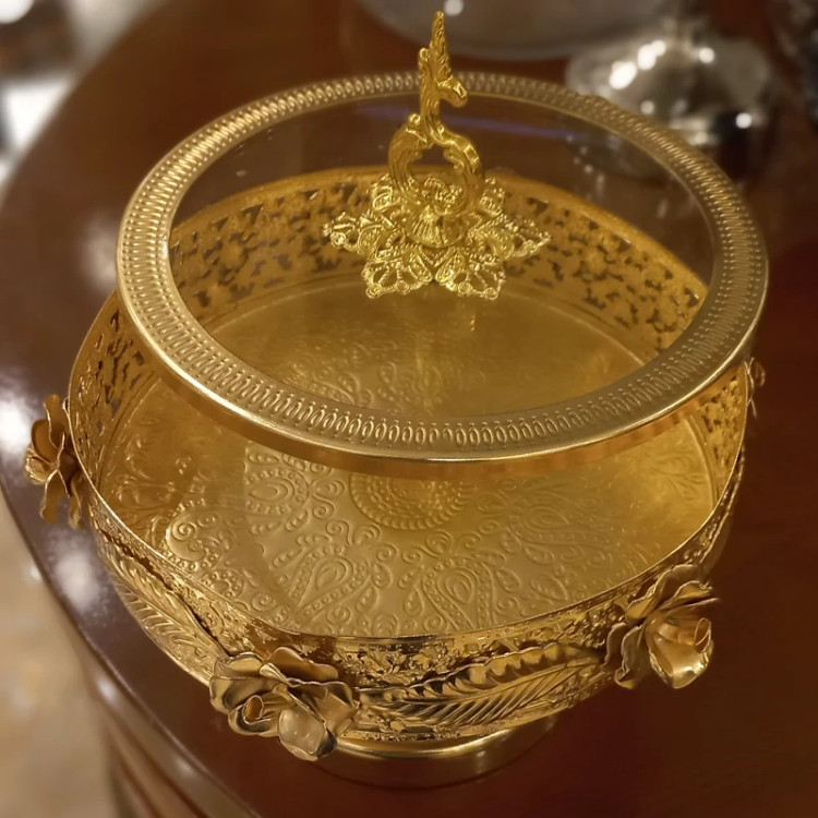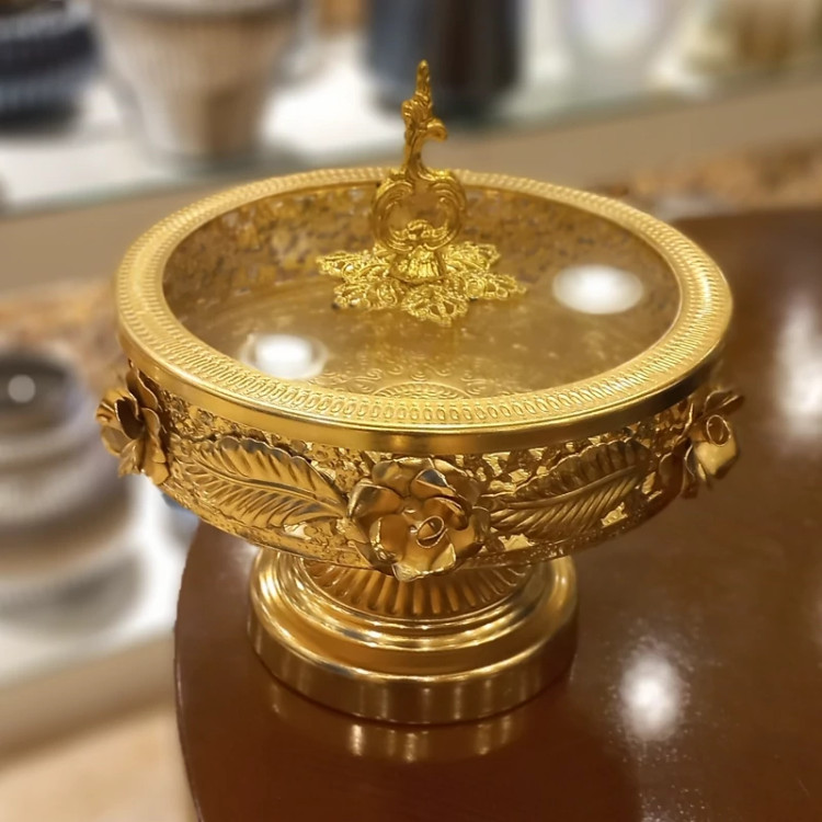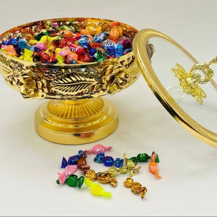 شکلات خوری گرد گلبرگ طلایی کیفیت عالی شیک و زیبا در سه رنگ طلایی و نقره ای و آنتیک موجود میباشد